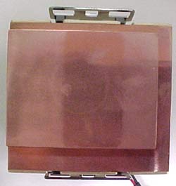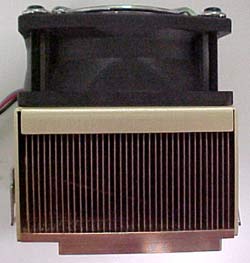 use for cooling the processor. The aluminum fan shroud is attached with some crimps and works well to protect the thin copper fins from potential damage. Each fin is interlocked with the next to ensure stability and a correct spacing of just over 1mm. |