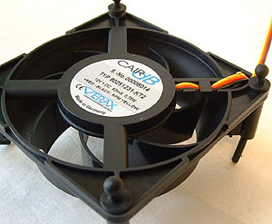 The fan is pretty strange in its design since we've yet to see anything which even remotely resembles the unit. Overall though, a fancy design won't always get your computer running cooler. With the onslaught of small formfactor PC's and VIA's EDEN motherboards a noiseless fan such as this could fill out the role of home entertainment system, or MP3 player quite well. Additionally, since the fan is just the right size for a powersupply, it might be useful there where it can serve as a less noisy fan for cooling the internal electronics. In this task the verax fans might just ultimately be suited best for. Given that the internal thermistor which measures temperature and consequently adjusts fan speed is located in a small recess in one of the motor braces. That location makes it ideal for tracking the input air temperature and pretty bad at adjusting to the temperature of the actual heatsink.