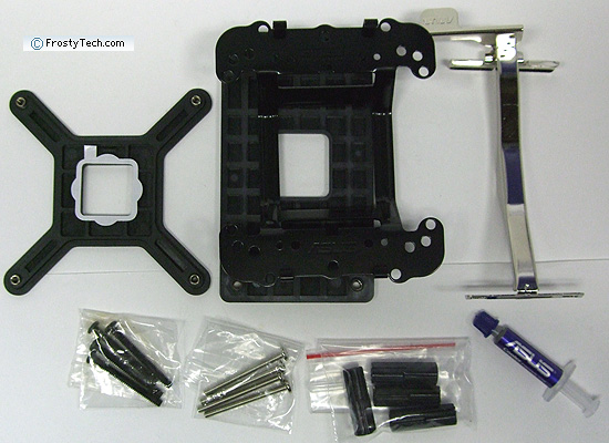 Asus' Silent Square EVO heatsink installs logically once you have the orientation of the upper metal socket and support stands all figured out, the only tool required is a screwdriver. The spring clip runs over the base of the heatsink to apply pressure onto the CPU. Both AMD and Intel users will have to remove the motherboard from the case to install a rear support plate first. That is always a bit of a drag to do. FrostyTech's Test Methodologies are outlined in detail here if you care to know what equipment is