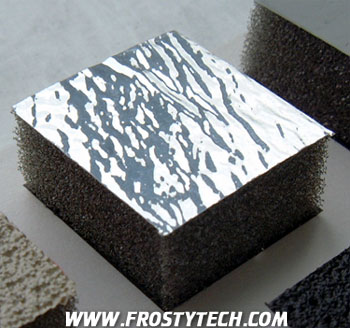 Melamine Foam/Low E composite with an aluminum foil facing. |